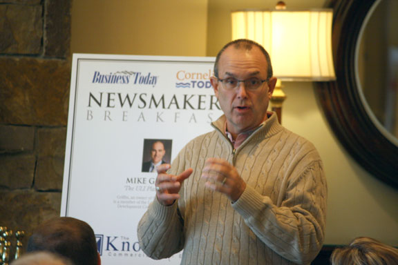 Griffin fielded questions from a Newsmakers Breakfast audience of about 75 people at The Peninsula Club. Griffin’s comments centered on a study conducted by the Urban Land Institute that was commissioned by the EDC. Cornelius Square could encompass as much as 339 acres – more than half of the undeveloped land remaining in Cornelius.
